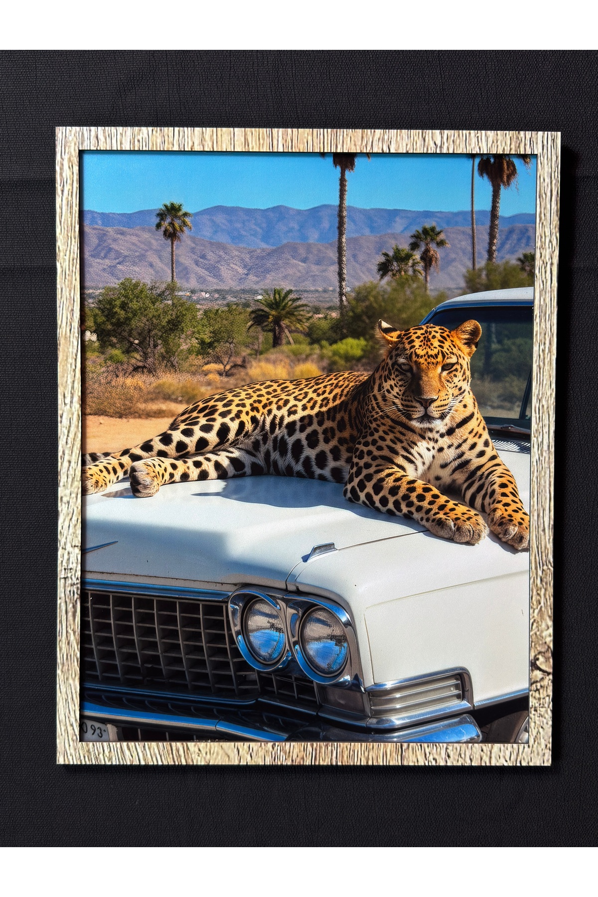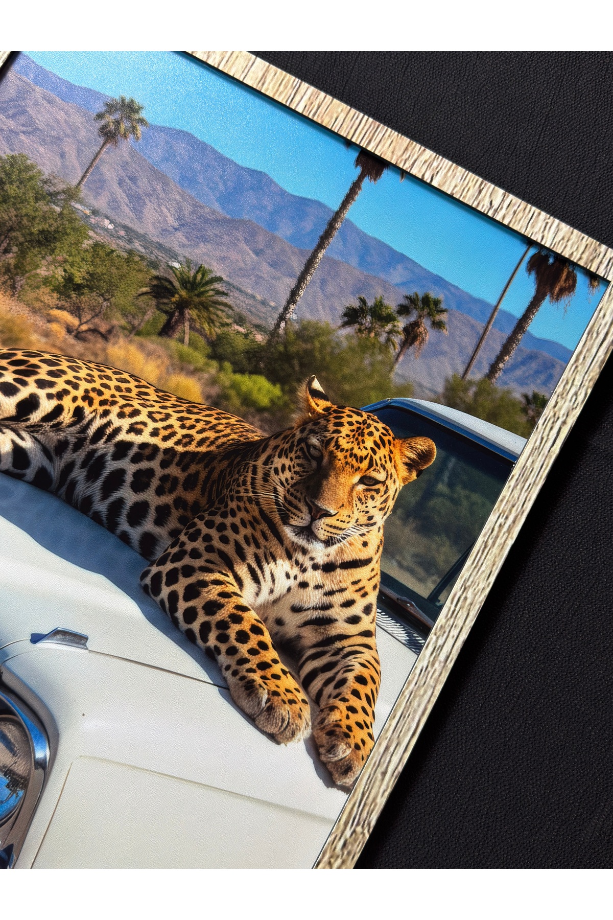 Leoparın çarpıcı ve güçlü görüntüsünün klasik araba ile buluştuğu bu özel tasarım tablo; oturma odası, yatak odası, çalışma odası, ofis ve kafe gibi pek çok ortamda şık ve dikkat çekici bir dekorasyon sağlar. Ayrıca sevdiklerinize hediye etmek için de mükemmel bir seçimdir.